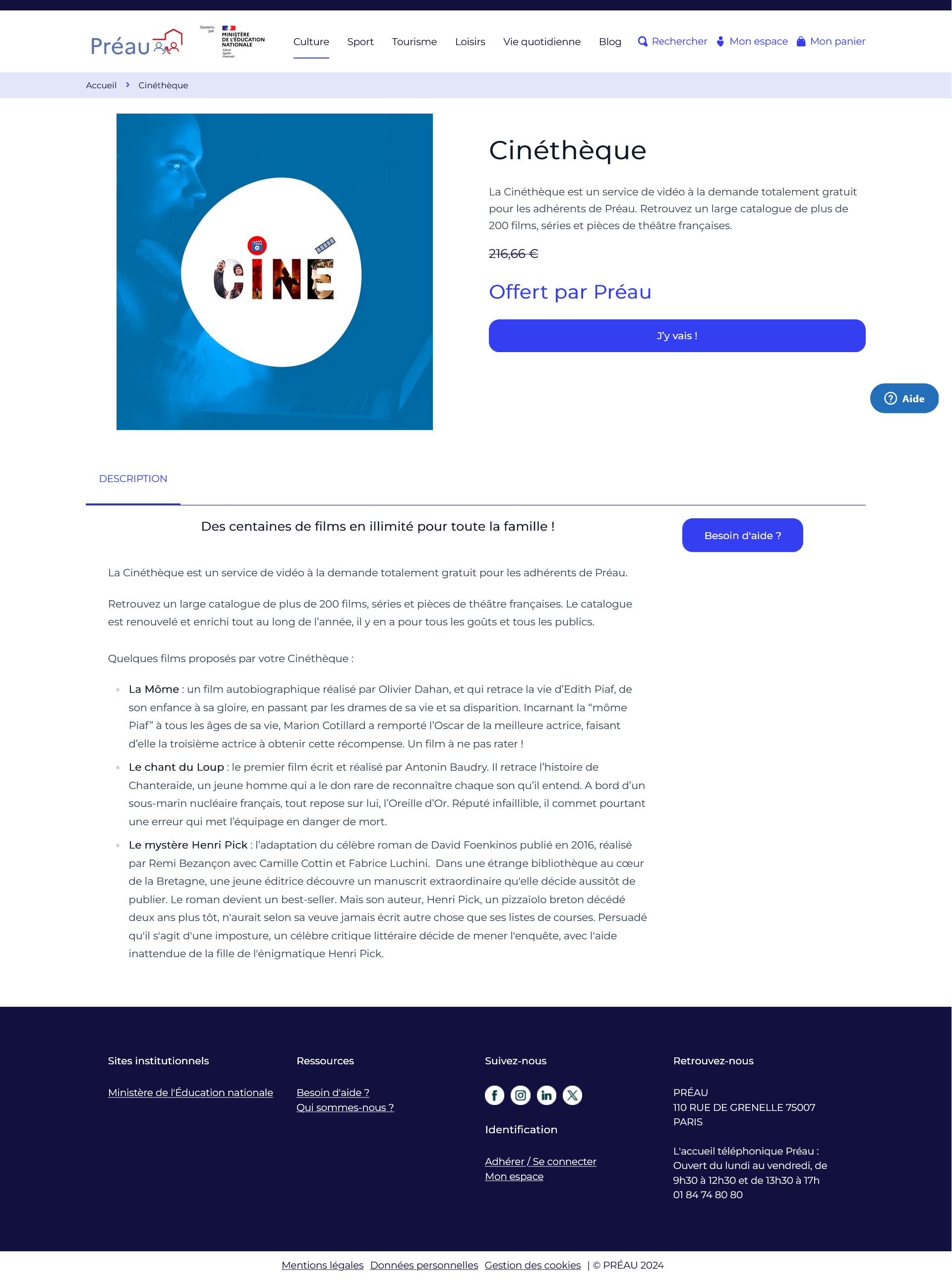 puis cliquer sur "Culture" choisir "Cinéthèque" et sur la page qui s'ouvre, cliquer sur "j'y vais" et... tu y vas ! Enfin, sans vouloir te commander Merci mais je ne vois pas de bouton "J'y vais". Si je clique sur le logo, il s'affiche en format image. Je n'ai que ça : https://ibb.co/tMsMR5w6
